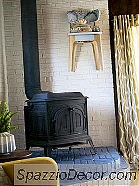 Un tocco di colore nell'angolo completa la stanza. I posti a sedere supplementari sono appesi ai ganci e fungono da ripiano quando non vengono utilizzati. Vuoi aggiornare il tuo mattone interno? Prima di iniziare, leggi i nostri suggerimenti sulla pittura per mattoni qui.