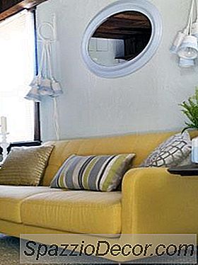 Tonalità allegre come pareti blu e verdi con un tocco di giallo nel divano conferiscono alla stanza un aspetto più chiaro (e luminoso).