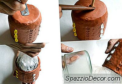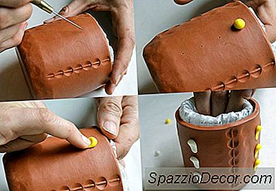 Usando la punta del righello e del punteruolo, tagliare un piccolo foro di drenaggio sul fondo della fioriera. Lisciare il bordo con la bacchetta e la spatola. Capovolgere la fioriera e raggiungere per liberare il vaso, rimuovendo delicatamente il sacchetto di plastica. Suggerimento: Per aiutare a impostare la tua plastilina, posizionare i moduli nel congelatore durante il riscaldamento del forno.