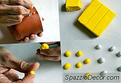 Prendi la vite e premi delicatamente nell'argilla, forma le impronte su una linea lungo il lato della tua pentola, assicurandoti di allineare le cuciture. Ripeti 3 o 4 volte in righe all'esterno. Mancia: Per impronte perfettamente allineate, segnare la vite con una penna, per facilità.